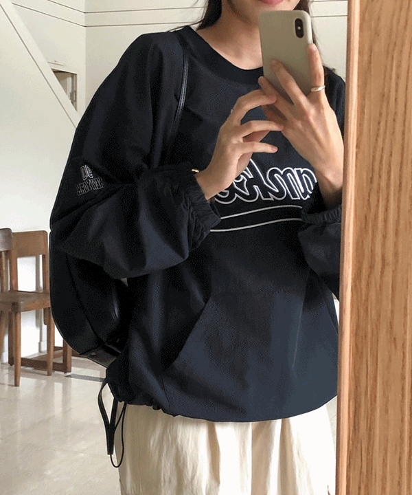 [블록코어룩/Y2K]양키즈 바스락 나일론 포켓 루즈 맨투맨(2col)