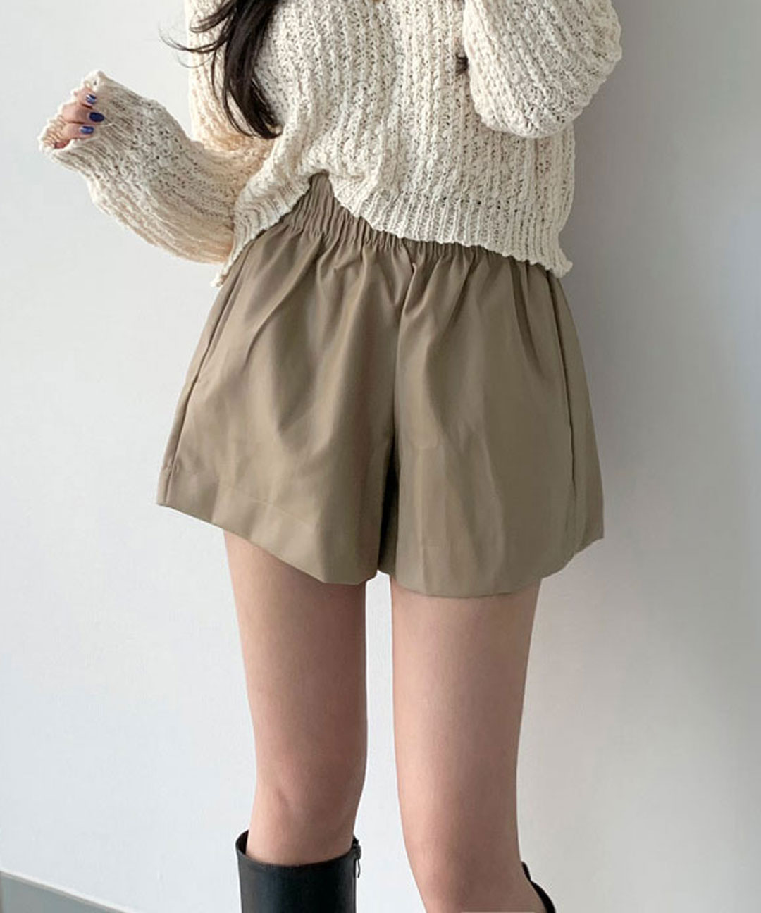 [허벅지커버!] A라인 밴딩 레더 숏팬츠 가죽 반바지 (3color)
