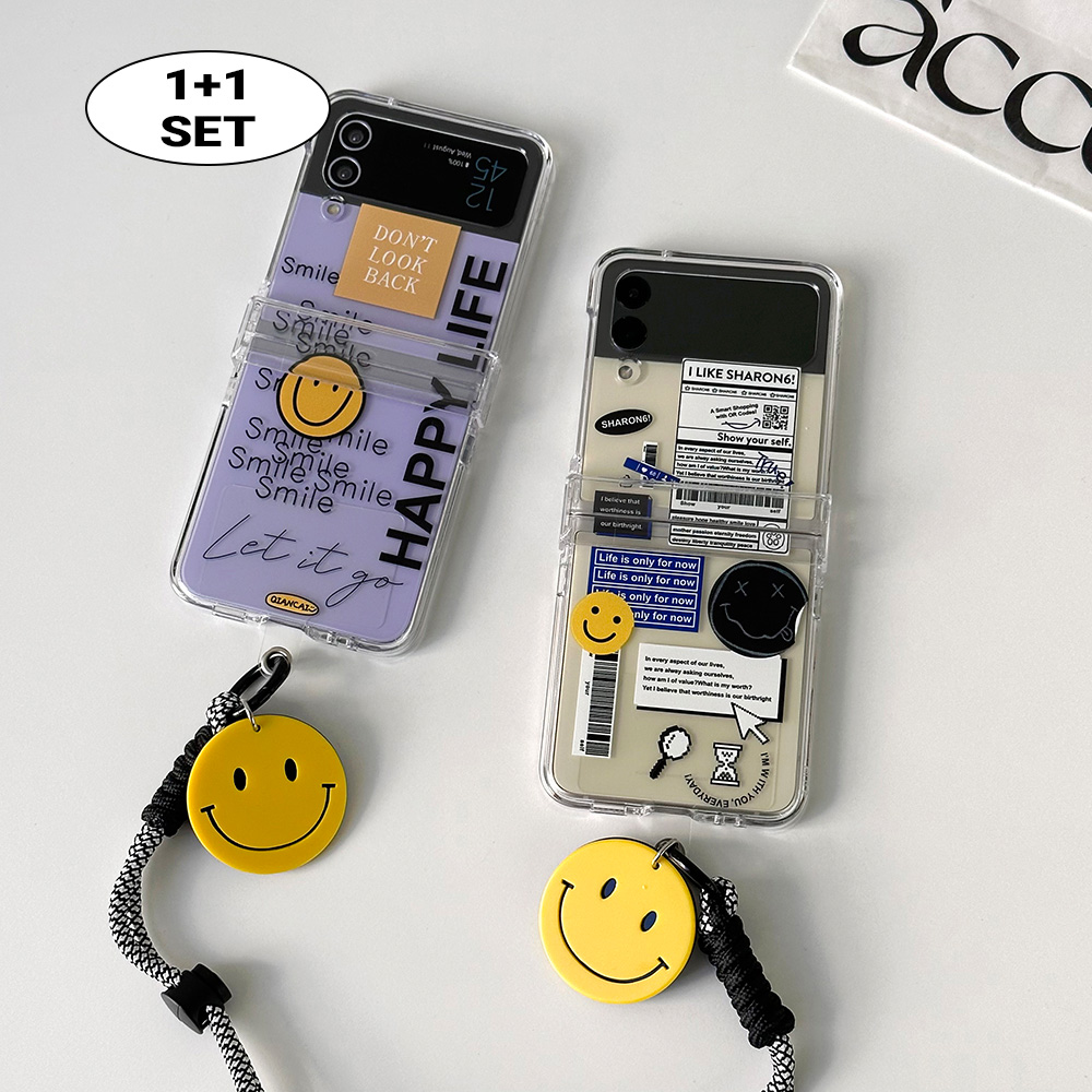 [Z플립5 입고/당일출고] 스마일 스트랩세트 포스터 투명 하드 갤럭시 Z플립 케이스