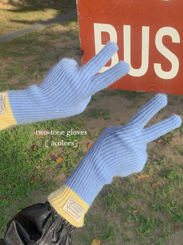 [1+1/터치] 네이밍 빈티지 택 투톤 터치 롱 장갑 (5 color)
