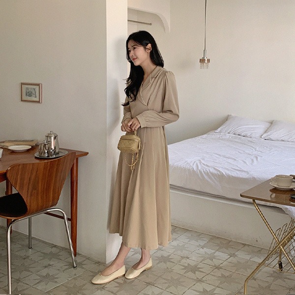 [하객룩♥][벨트set][MADE] 타임즈 오픈카라 플리츠 롱원피스(벨트세트)(44~110) (신상-빅사이즈-체형커버-데일리룩-하객룩-롱드레스-벨트원피스-모임룩-상견례룩-데이트룩-데일리룩-출근룩-가을하객룩)