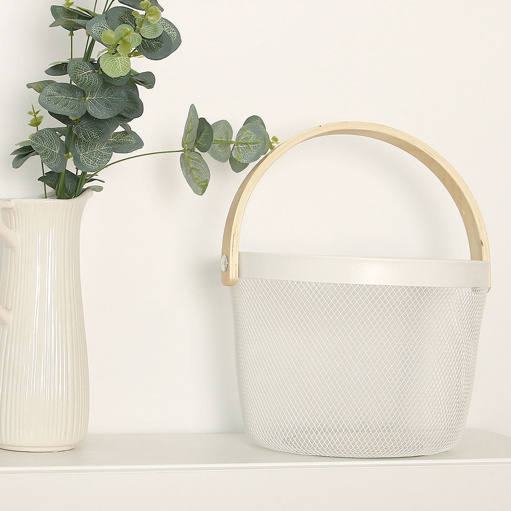 메쉬 손잡이 원형 바구니 팬트리 수건 주방 다용도 수납 정리함
