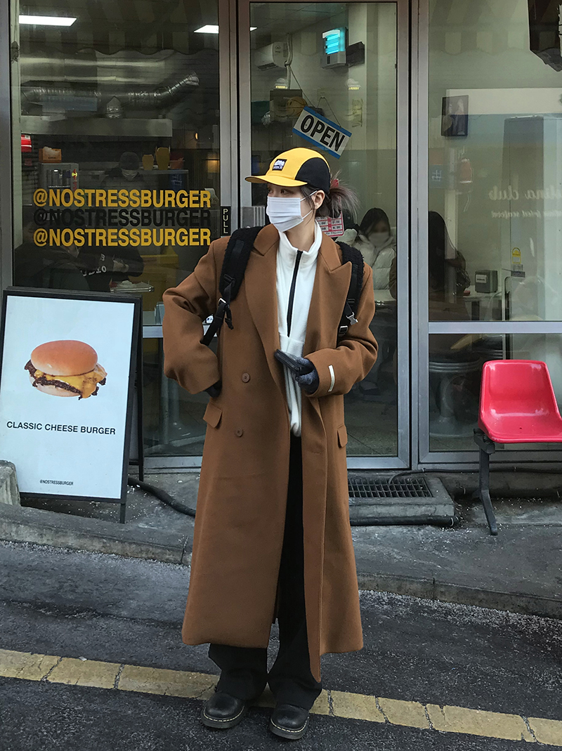 [UNISEX] DOUBLE LONG COAT (orange-brown / black)