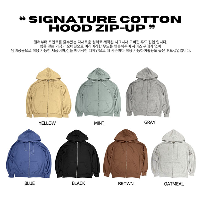 [오버핏] 시그니쳐 코튼 무지 후드 집업 - 7color