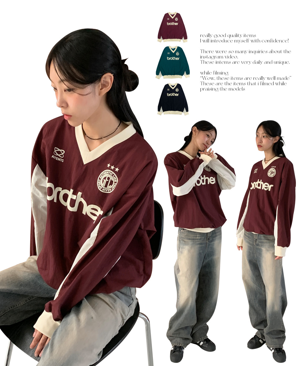 브린 브이넥 레터링 밴딩 나일론 맨투맨 - 3color