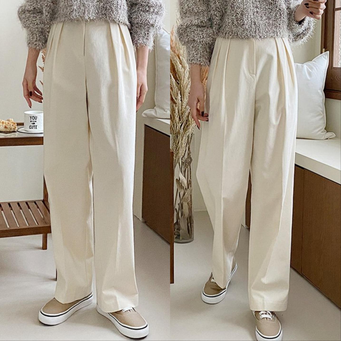 여성정장바지 핀턱 와이드슬랙스 빅사이즈 오버핏 와이드팬츠 여자면바지