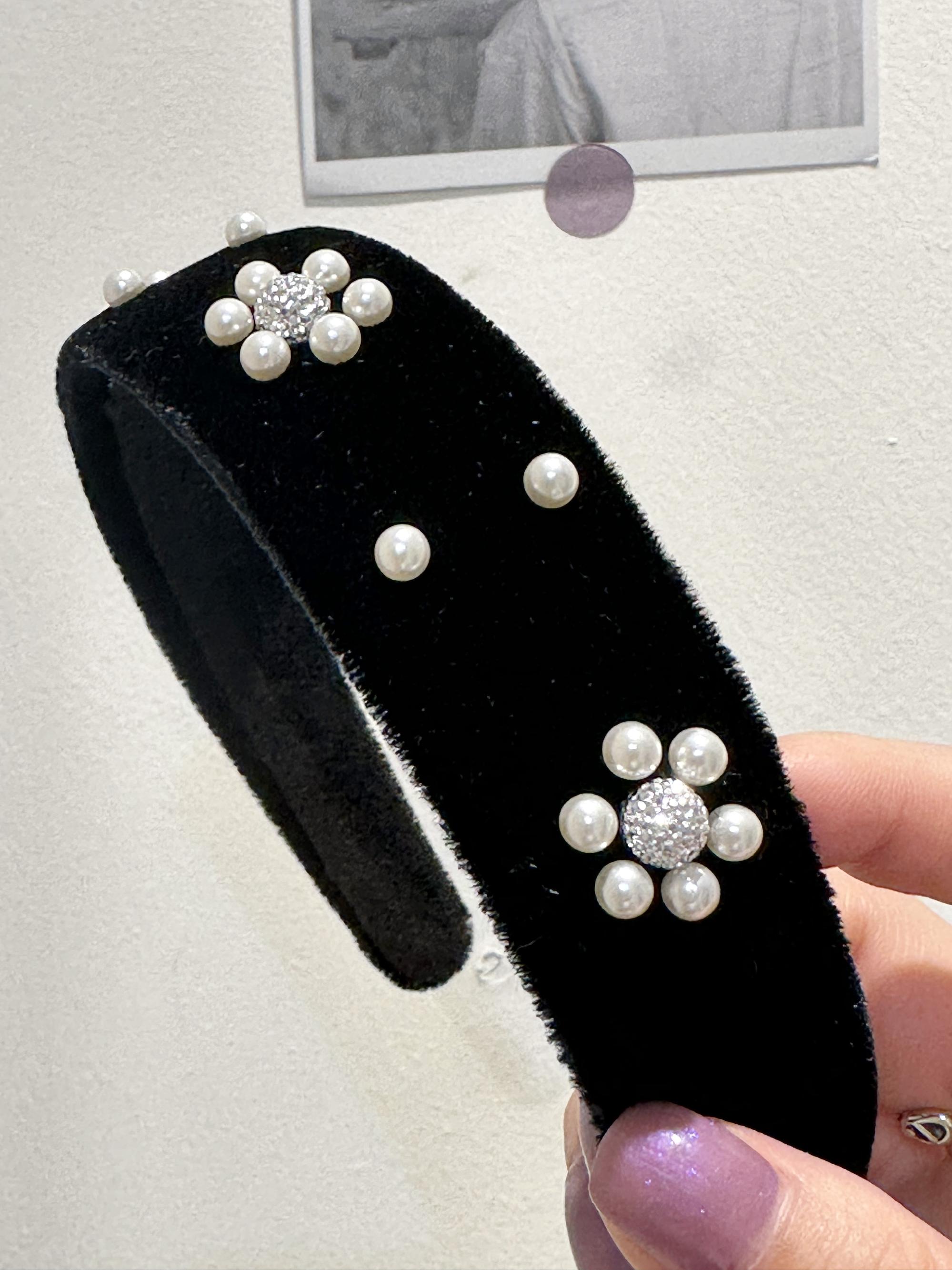 [핸드메이드] 진주 벨벳 헤어밴드 머리띠 코디템