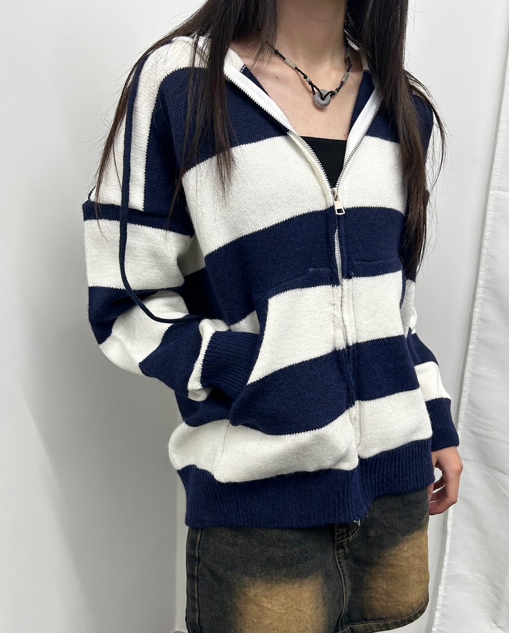 [y2k💙] 줄무늬후드집업 후드집업 니트집업 빈티지