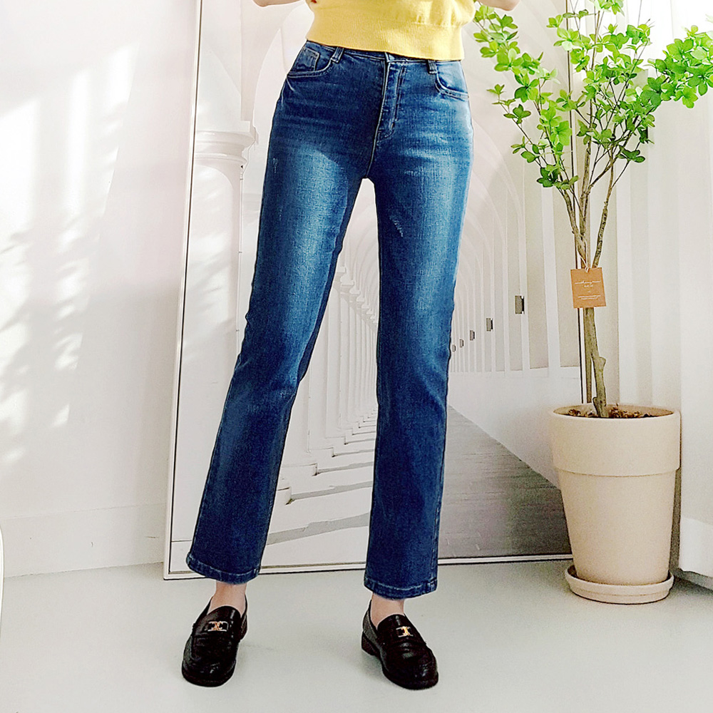 [103st] 브러쉬 워싱 밴딩 스판 일자 청바지/여성 S~3XL 빅사이즈 데님 팬츠