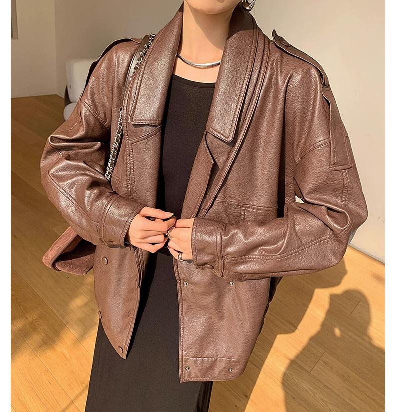 가죽자켓 빈티지 오버핏 견장 트렌치 라이더 자켓 밴딩 더블 아우터
