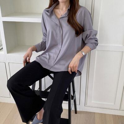 누나카 카라넥 밑단 U라인 노버튼 블라우스