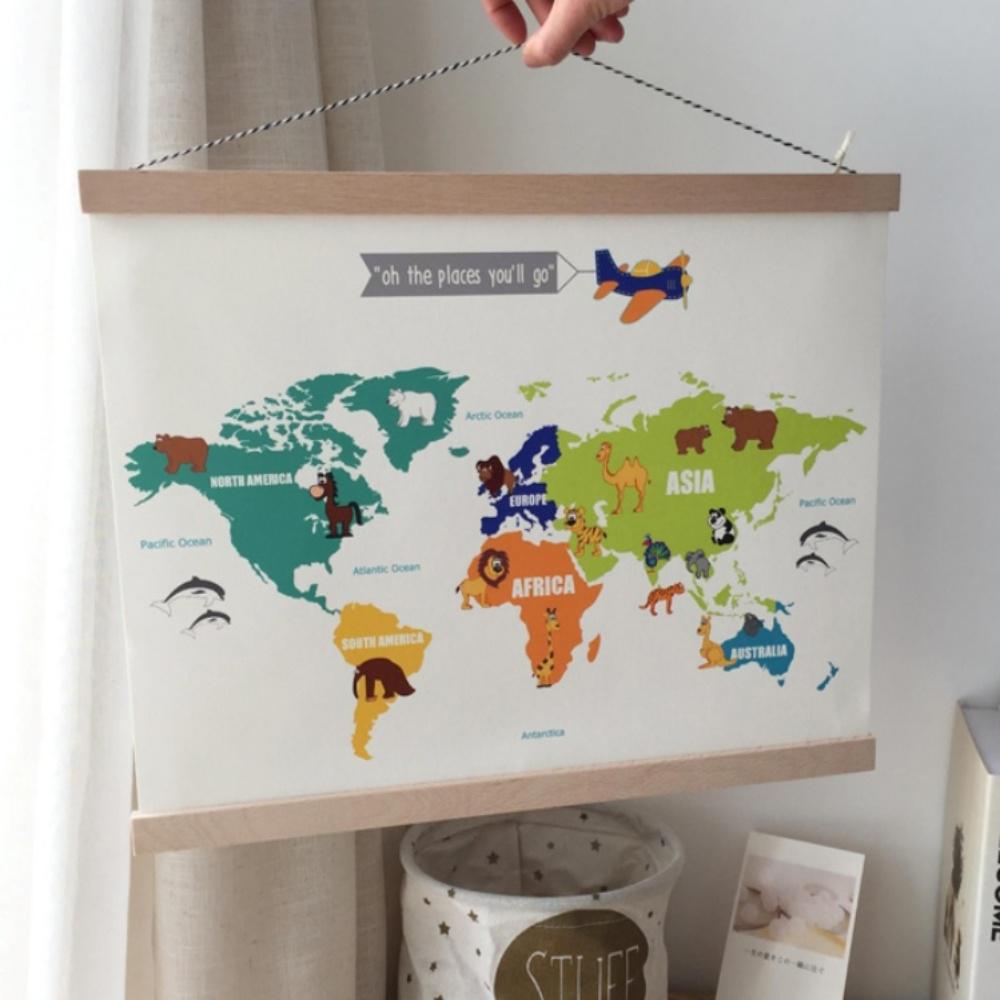 세계지도 패브릭 가랜드 원목지도 북유럽 아이방 벽장식인테리어