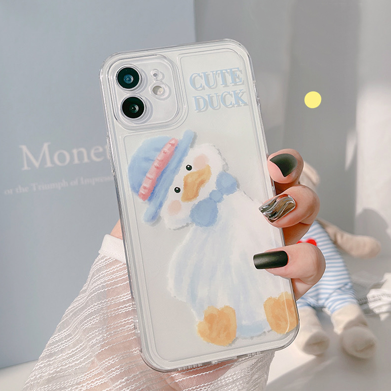 아이폰15 프로 맥스 블루 옐로우 잠수 오리 하드 젤리 투명 귀여운 케이스