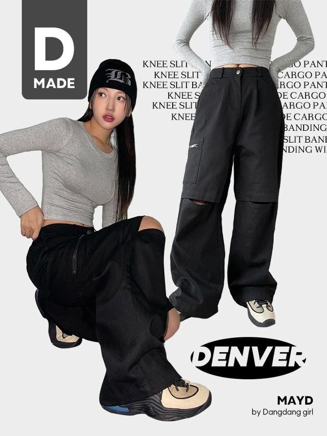 [4천장돌파][MADE] 빅사이즈 S-4XL 덴버 무릎 트임 밴딩 와이드 카고 팬츠