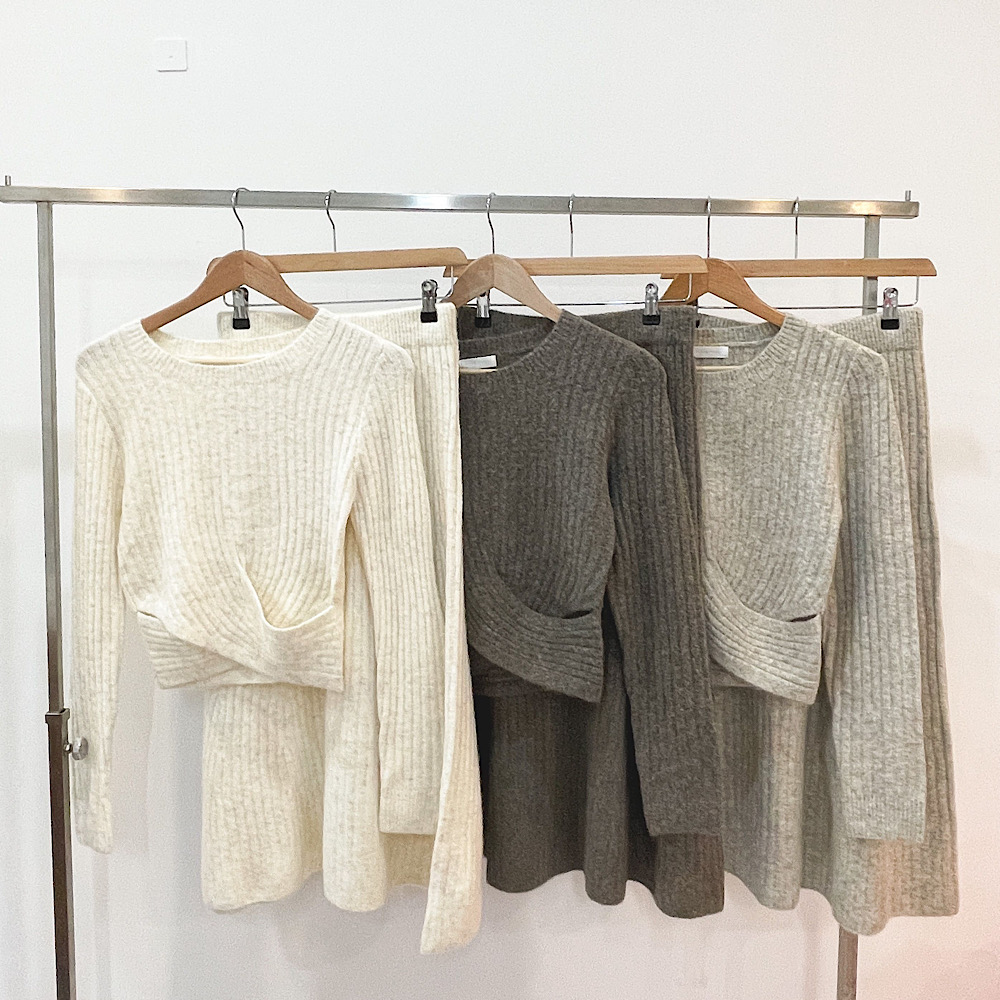 투피스 니트 코디 상하의 치마 여행룩 골지 베이지 브라운 캐주얼 마실룩 스커트 세트