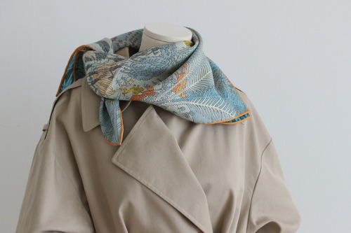 블루 오렌지 그레이 양면 캐시미어 실크 사각 가을 스카프 70