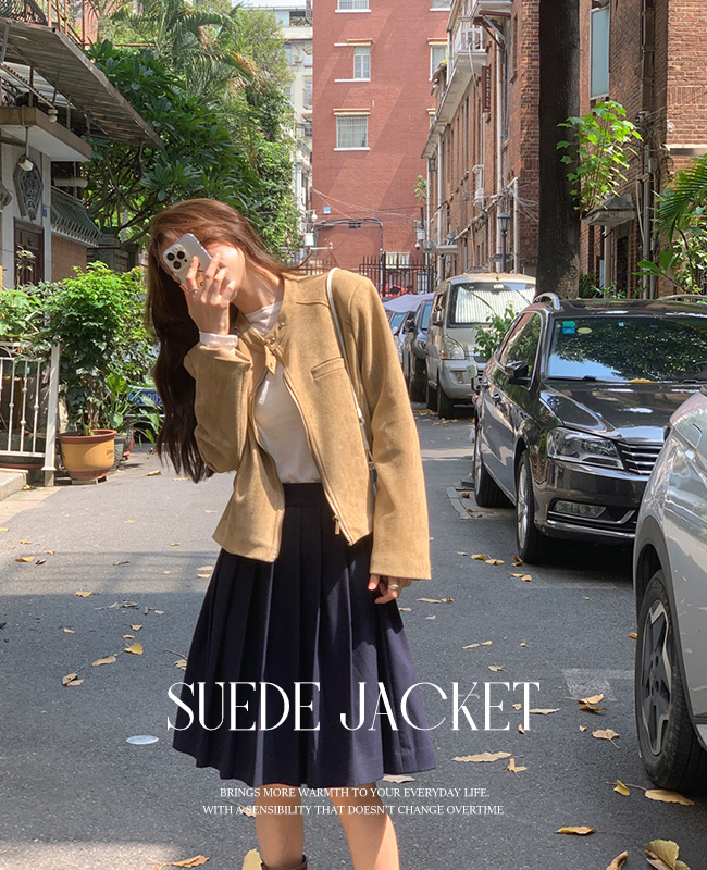 [모델소장/간절기적극추천] 노카라 스웨이드 크롭 블루종 자켓 - 2color