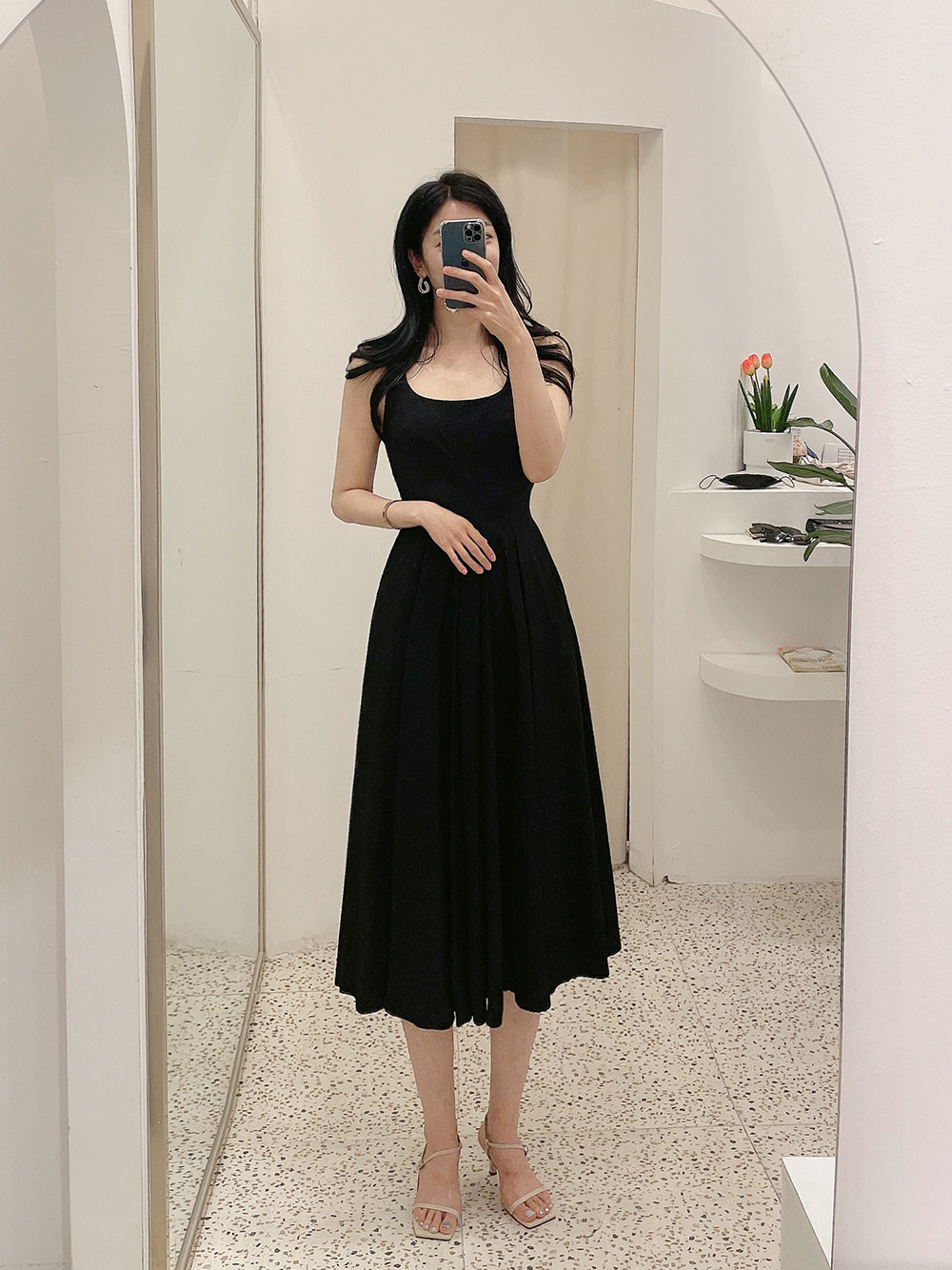 리플원단 스퀘어넥 하객패션 플레어 원피스(시그니처)