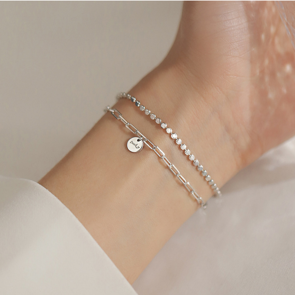 [당일출고🚚] 925 스털링 실버 두줄 롱 체인 럭키 라운드 팔찌