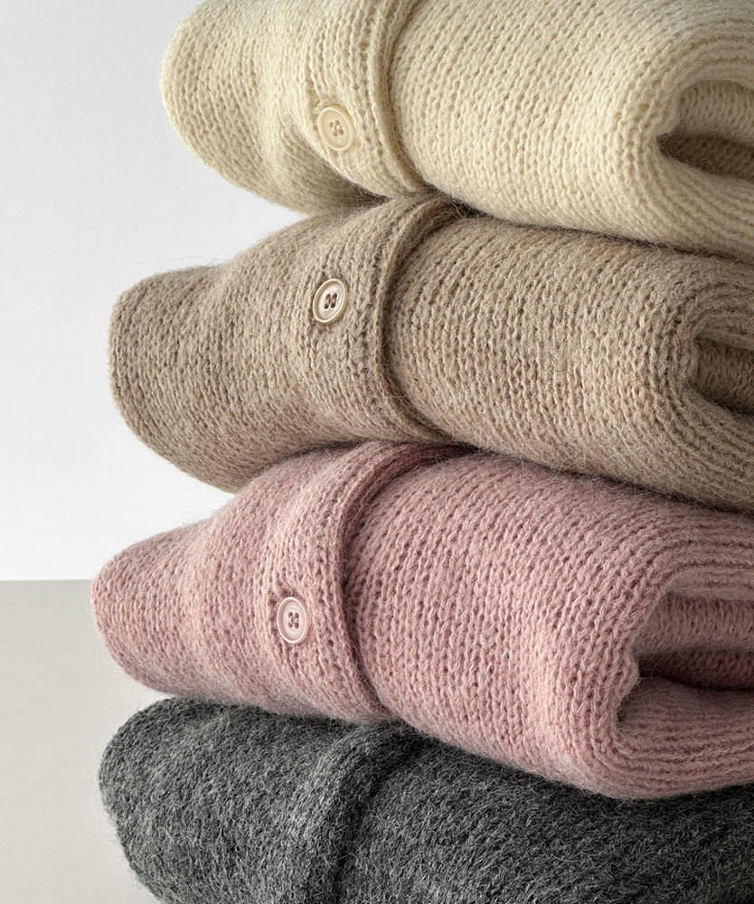 오버핏 겨울 라운드 울 알파카 니트 가디건