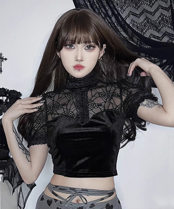 무료배송 로즈스파이더 벨벳크롭 블라우스 (블랙) #할로윈 #파티