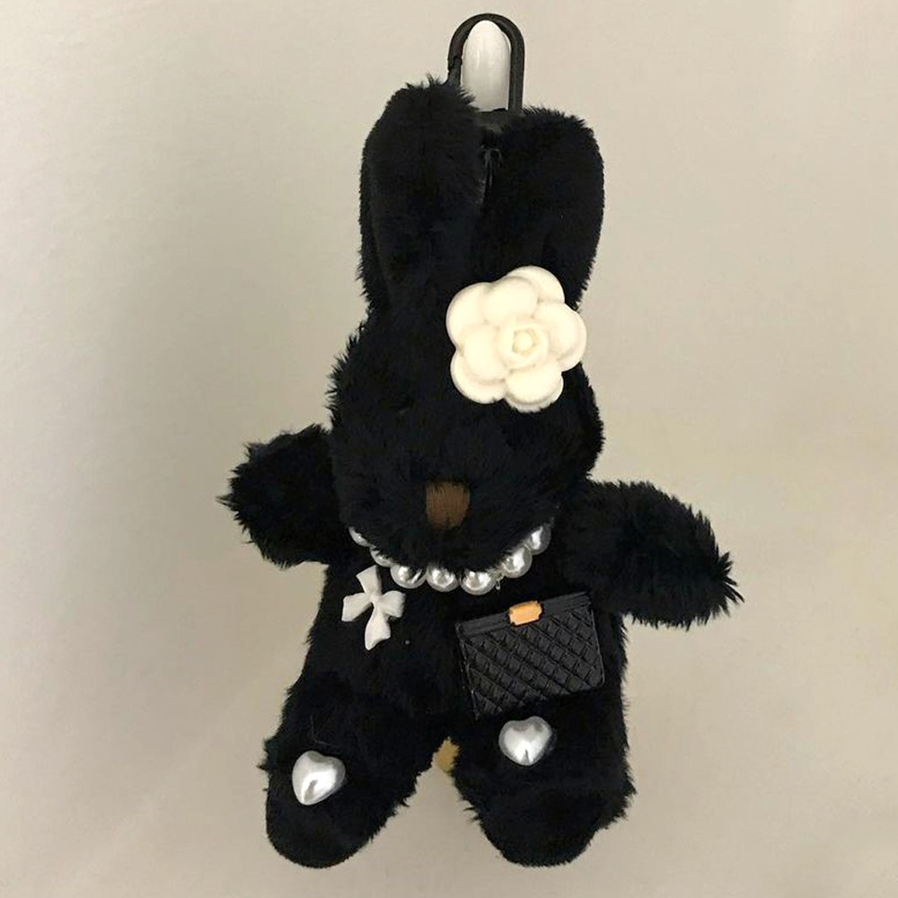 (문스샵) 카멜리아 꽃 토끼 인형키링 리본 미니인형 자동차키링 차키 키링 가방 인형 에어팟 열쇠고리 키홀더 동물 인형 가방키링 토끼키링 블랙토끼인형 검정토끼인형 진주목걸이 진주하트