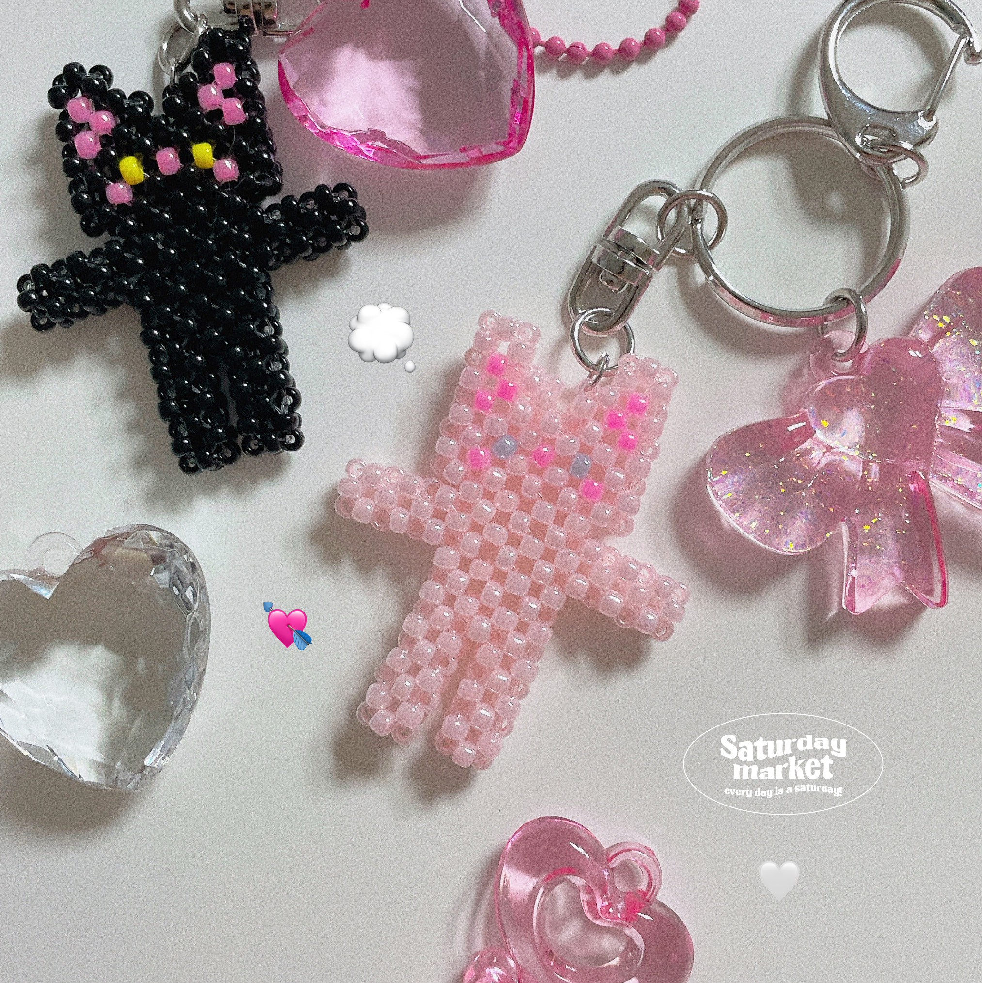 자체제작—̳͟͞͞💗핑크 네모네모 고양이 비즈 키링 (saema)