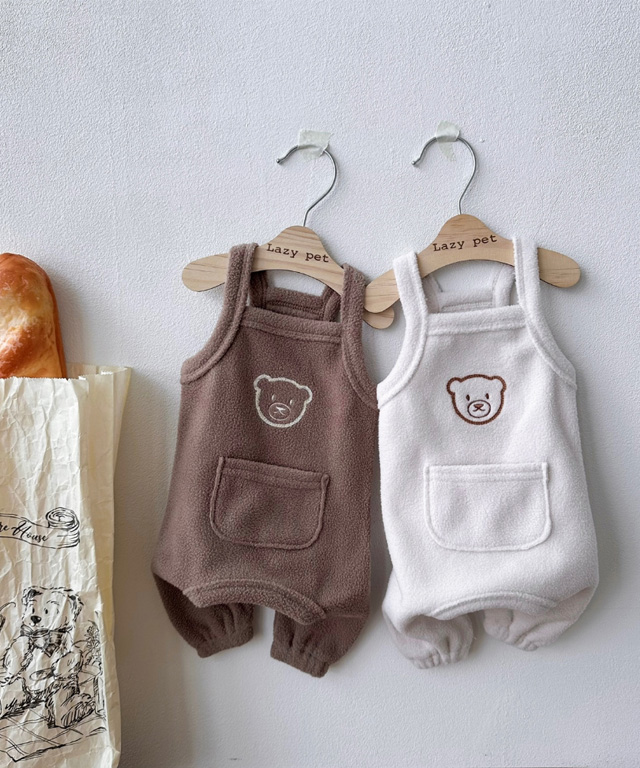 아기곰 포켓 멜빵 후리스 올인원 / 강아지 바지 애견 멜빵바지 반려견 겨울옷 S - XL