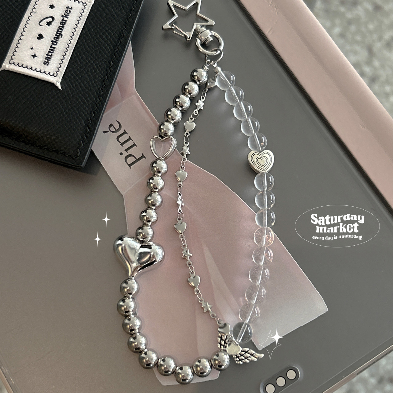 자체제작—̳͟͞͞💗하트 엔젤윙 비즈 스트랩 키링(saema)