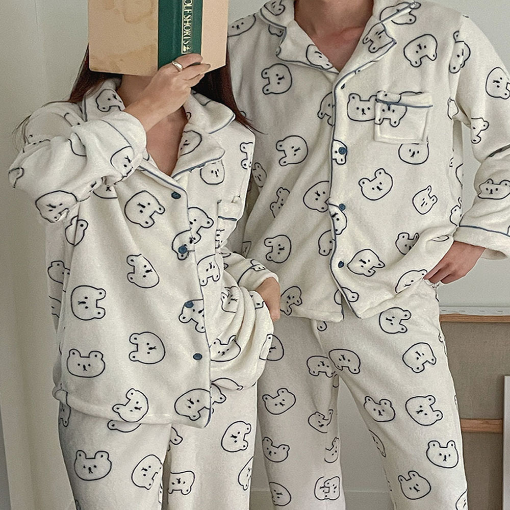 [당일출고🚀] 곰돌이수면잠옷 커플수면잠옷 남자수면잠옷세트 여자수면잠옷세트 곰돌이커플수면잠옷