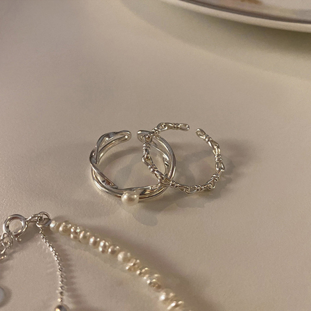 [당일발송/2개가격] 크로스 진주 포인트 오픈링 패션 반지 세트
