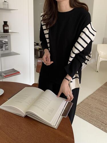 [💓츄리닝세트/자체제작][트레이닝셋업] 골지 티셔츠 밴딩바지 투피스 2812