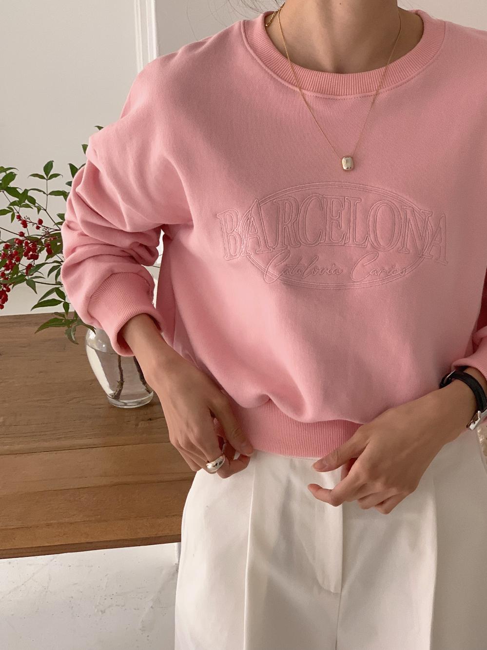기모 바르셀로나 자수 라운드 크롭 맨투맨