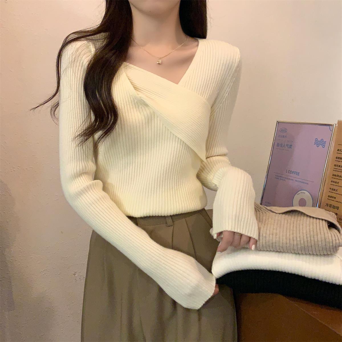 [4color][4size]언발 꼬임 랩st 슬림핏 골지니트 스웨터 모던 베이직 심플 무지 학생룩 캠퍼스룩 여친룩 데이트룩 청순 하객룩 격식룩 MZ 일상룩 가을 겨울 데일리룩