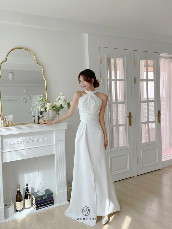 모네 홀터넥 셀프웨딩 드레스 2color, 화이트 블랙 파티 바다씬 브라이덜샤워 스냅 촬영 2부 피로연 돌잔치 원피스