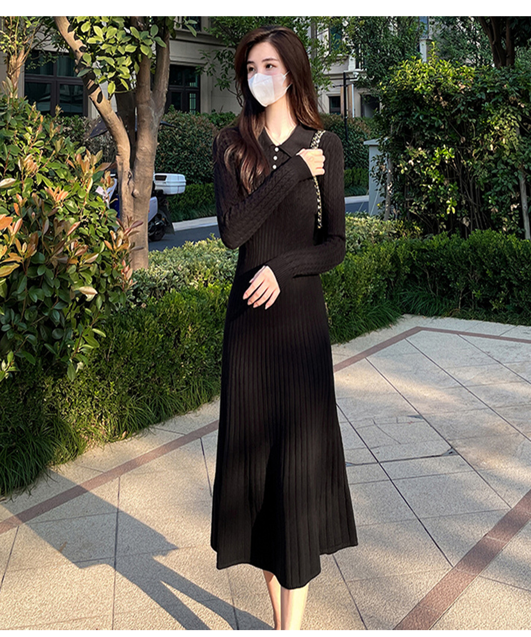 모니따제이 여성 스웨터 주름포인트 니트긴팔 롱원피스
