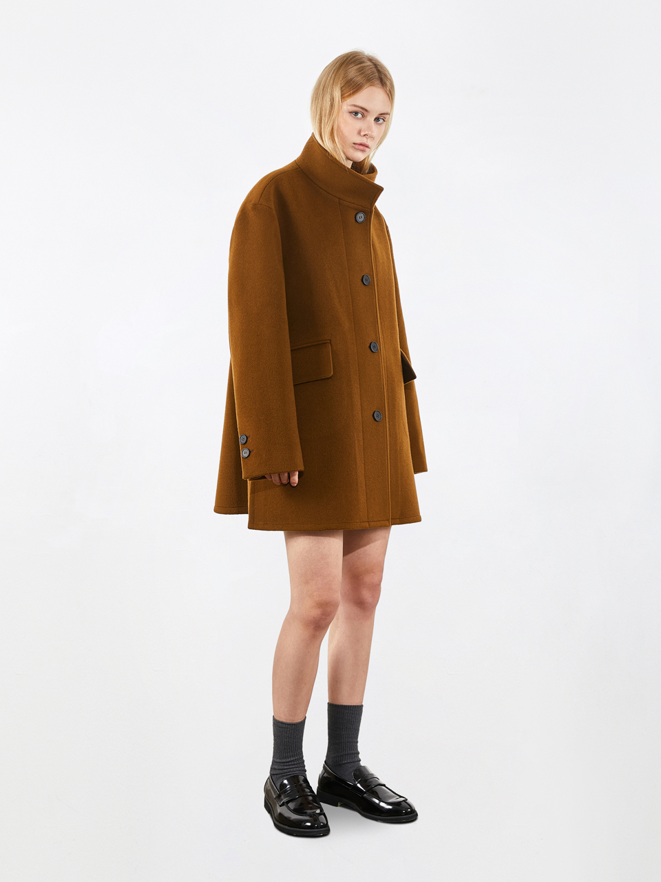 오버사이즈 차이나 카라 카멜 브라운 반코트
