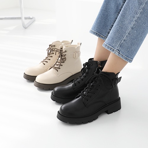 소가죽 세이론 플랫 워커부츠 4cm