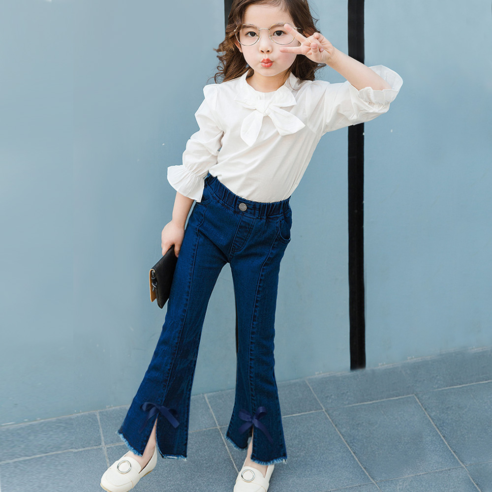 리본 데님팬츠 여아 청바지 나팔 아동데님 초등학생 입학선물