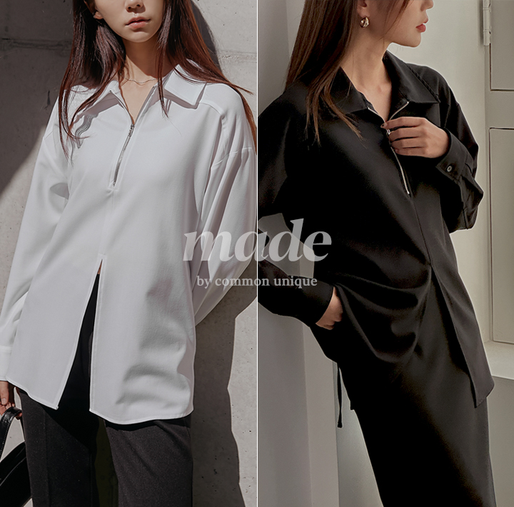 [MADE] 벤터스 집업 스트랩 블라우스 (간절기/가을/루즈핏/여리핏/링클프리/출근룩)