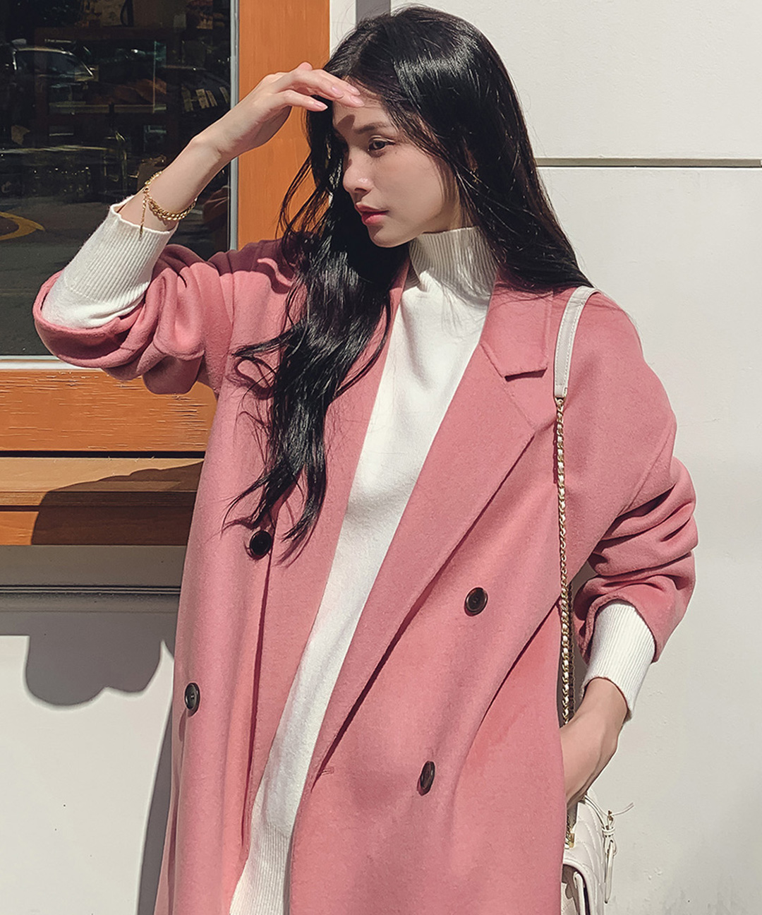 [시즌 오프] 울 100 더블 버튼 오버핏 핑크 코트