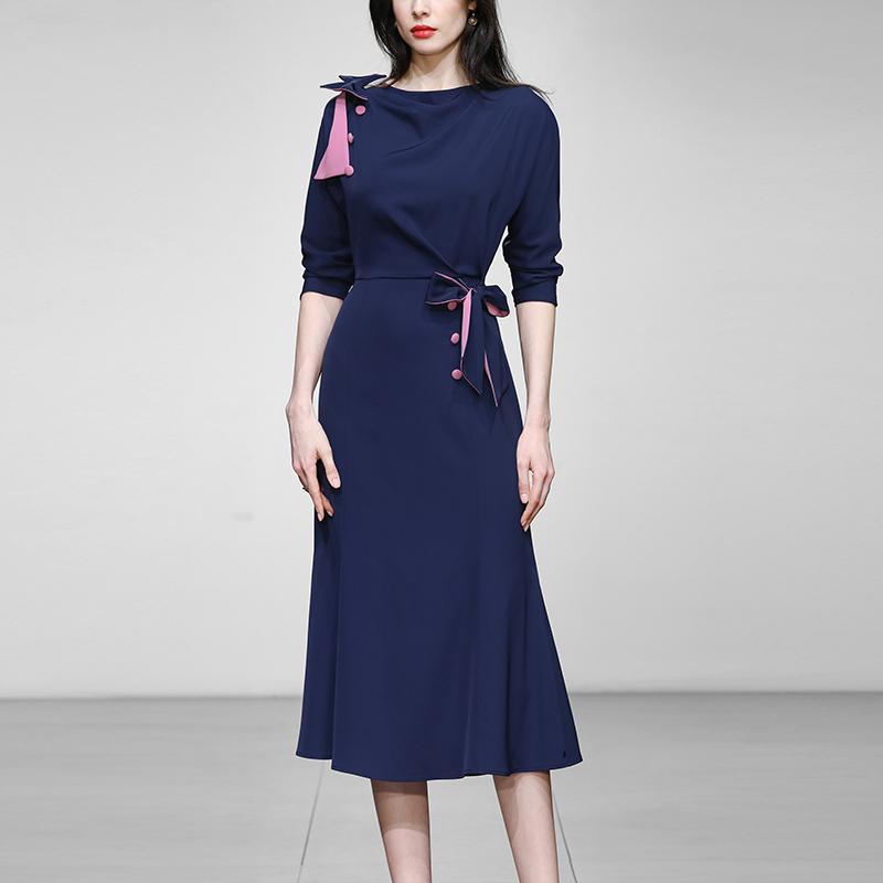네이비 봄 원피스 결혼식 하객룩 아나운서 신부2부 명품스타일 빅사이즈