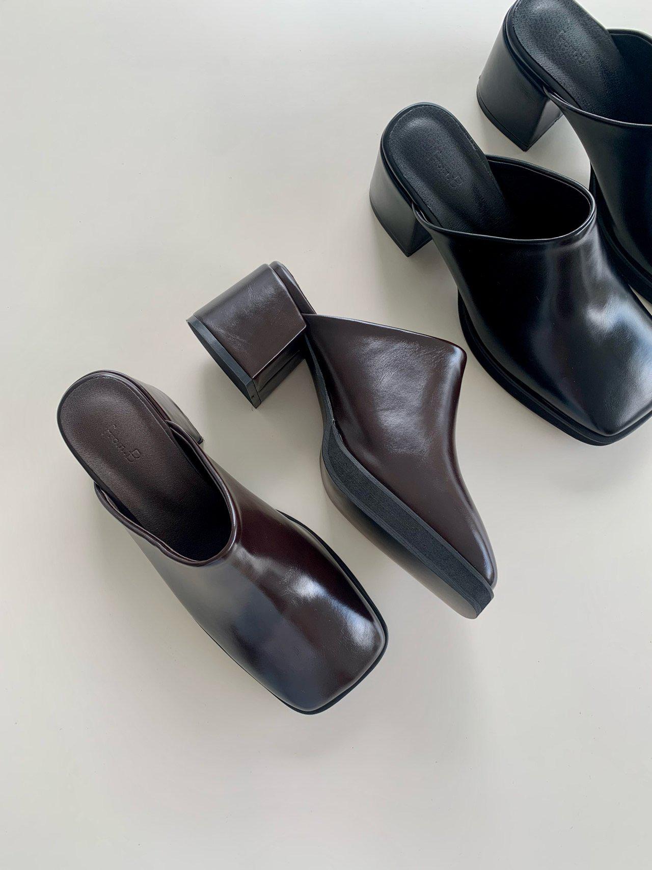 마로 가보시 스퀘어 미들 통굽뮬 여성슬리퍼