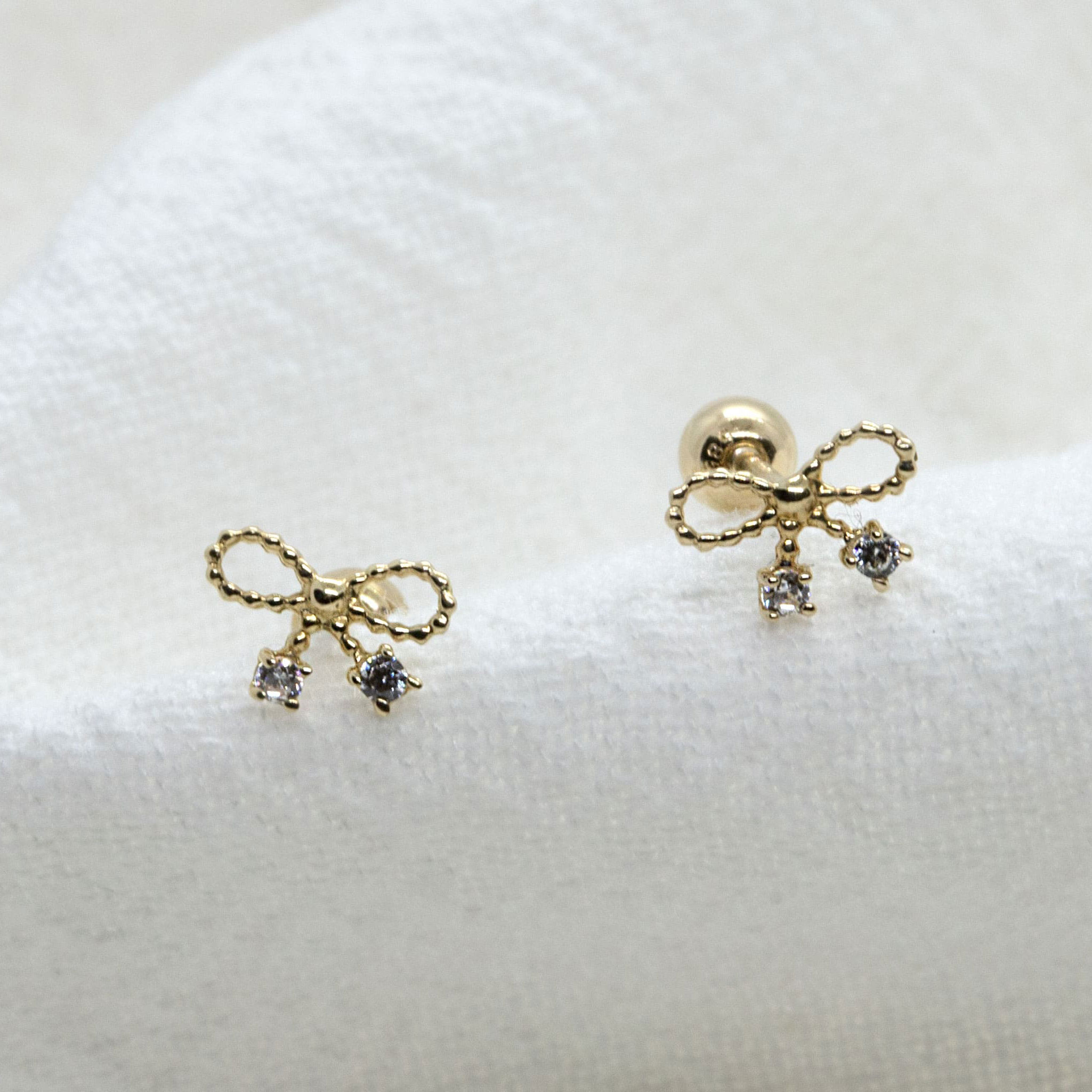 [낱개판매] 리본 피어싱 귀걸이 심플 데일리 기본 패션 저렴한 선물 14K 18K