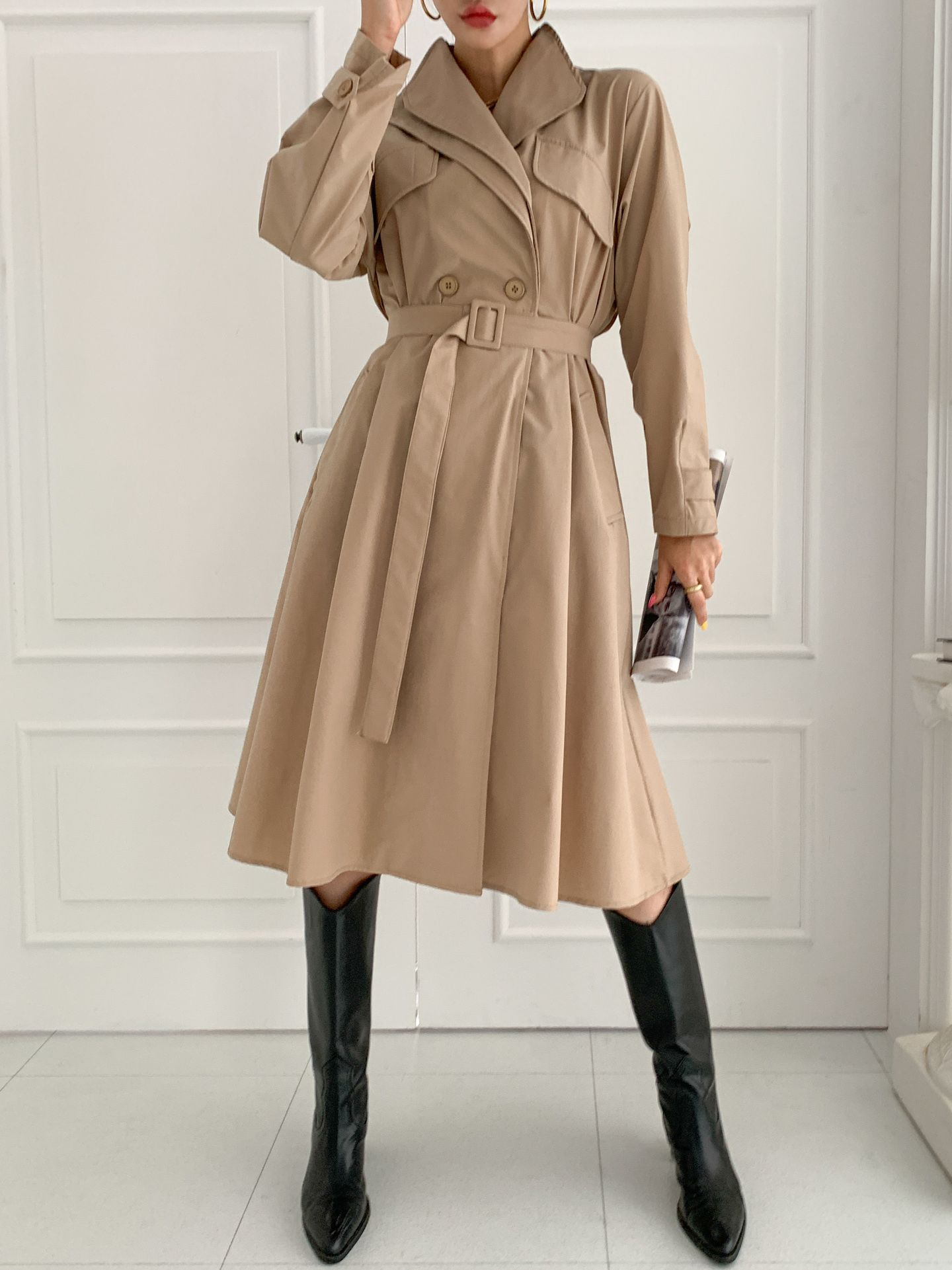 가을 여성 바바리코트 트렌치코트 더블 벨트 롱 코트