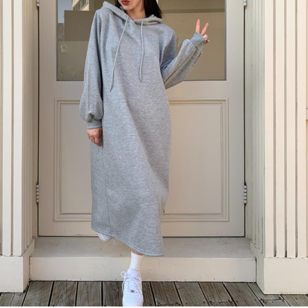 오버핏 기모 후드 롱원피스 후드티원피스 맨투맨 롱원피스 4컬러