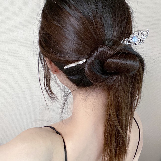 [주문폭주,3차재입고]라운드 크리스탈 헤어 비녀 / 고프코어 발레코어 유니크 힙 y2k 포인트 블록코어 원석 블루 실버비녀 곡선 레어 러블리 하이틴