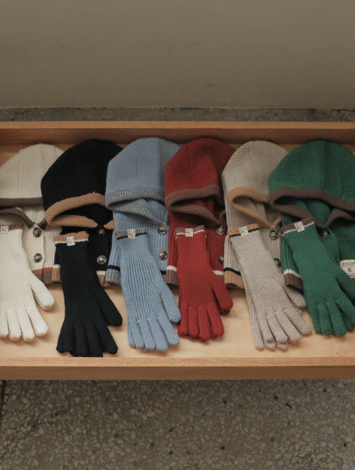 도톰배색 투버튼 니트 바라클라바 핑거홀 장갑 세트 6color