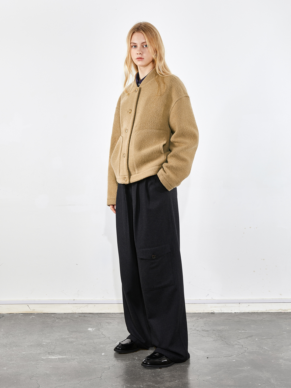 봄버 자켓 울 링구 베이지 0084