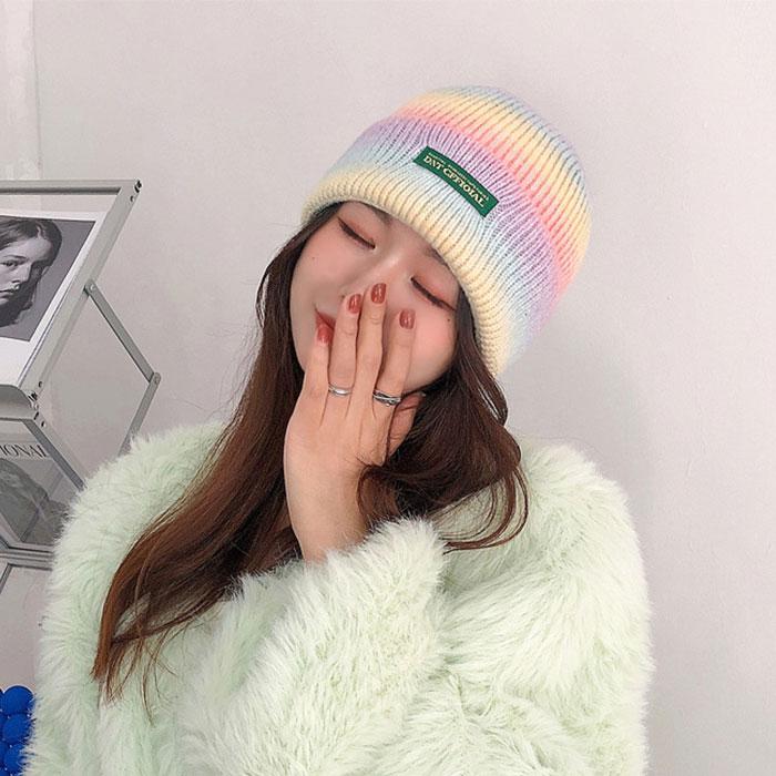 [랄라닷] 레인보우 겨울모자 남자 여자 니트 비니 모자 숏비니 루즈핏